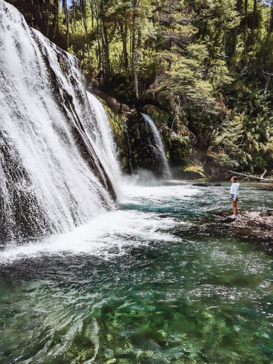 Es interesante observar como a partir de este punto el paisaje comienza a cambiar y el bosque cerrado le da paso a un espacio más abierto, con vegetación más baja. El inmenso mallín, que se ve desde la ruta y tiene como fondo las cascadas, anuncian la entrada a un entorno donde la montaña se aleja de la ruta y asoman las pequeñas construcciones de los pobladores rurales que la habitan.