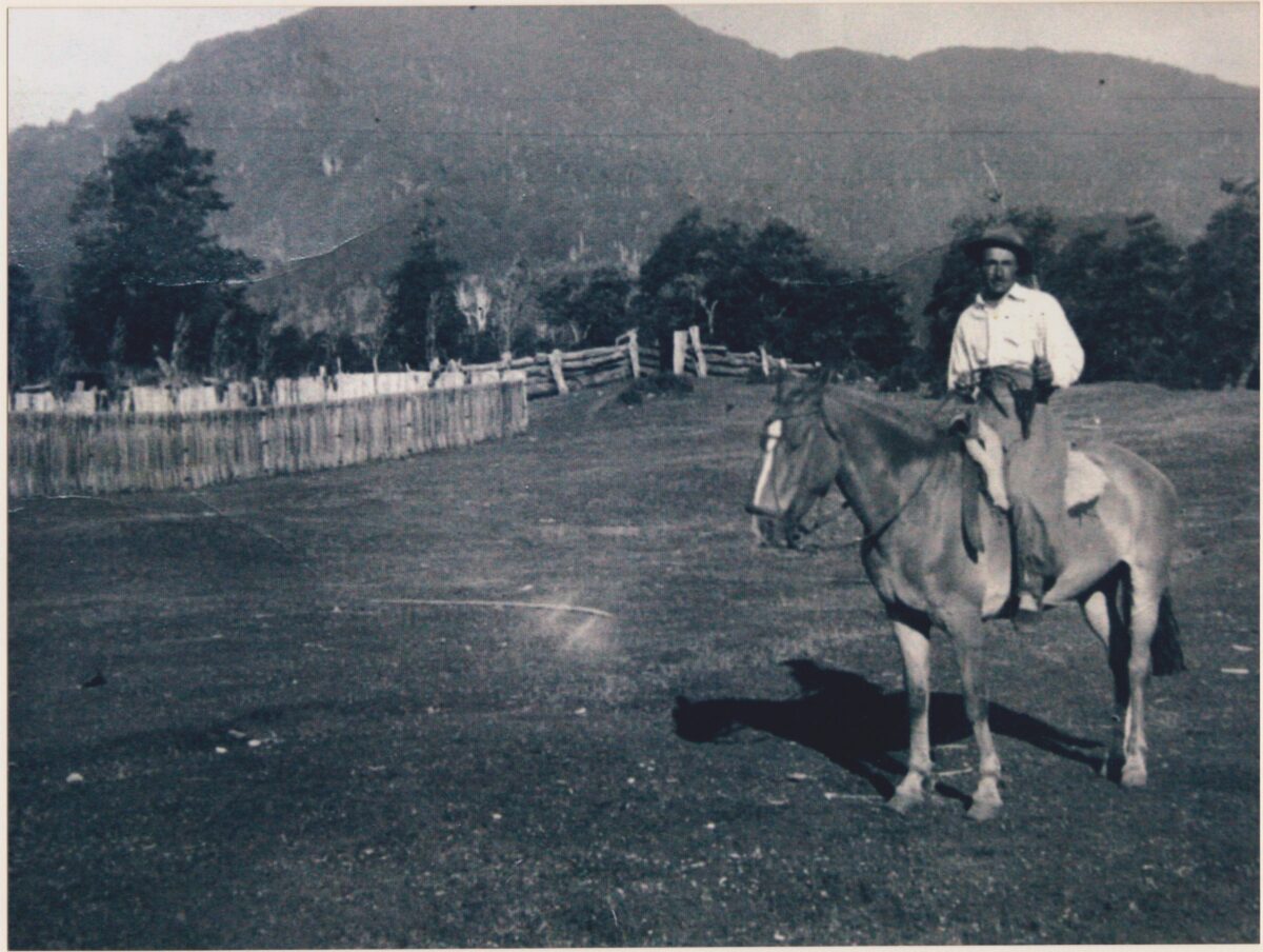 1903- El Perito Moreno recibe en reconocimiento por sus servicios, tierras fiscales en Pto Blest y las dona para la creación de un Parque Natural. Llega el Pionero Italiano Primo Capraro al Correntoso, como se denominaba entonces esta zona norte del Nahuel Huapi. Hay ya en el lugar unos pocos y dispersos pobladores. Francisco Guananja fue el primer policía fronterizo en el Rincón.